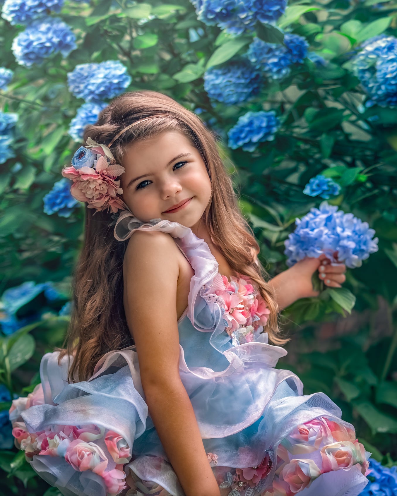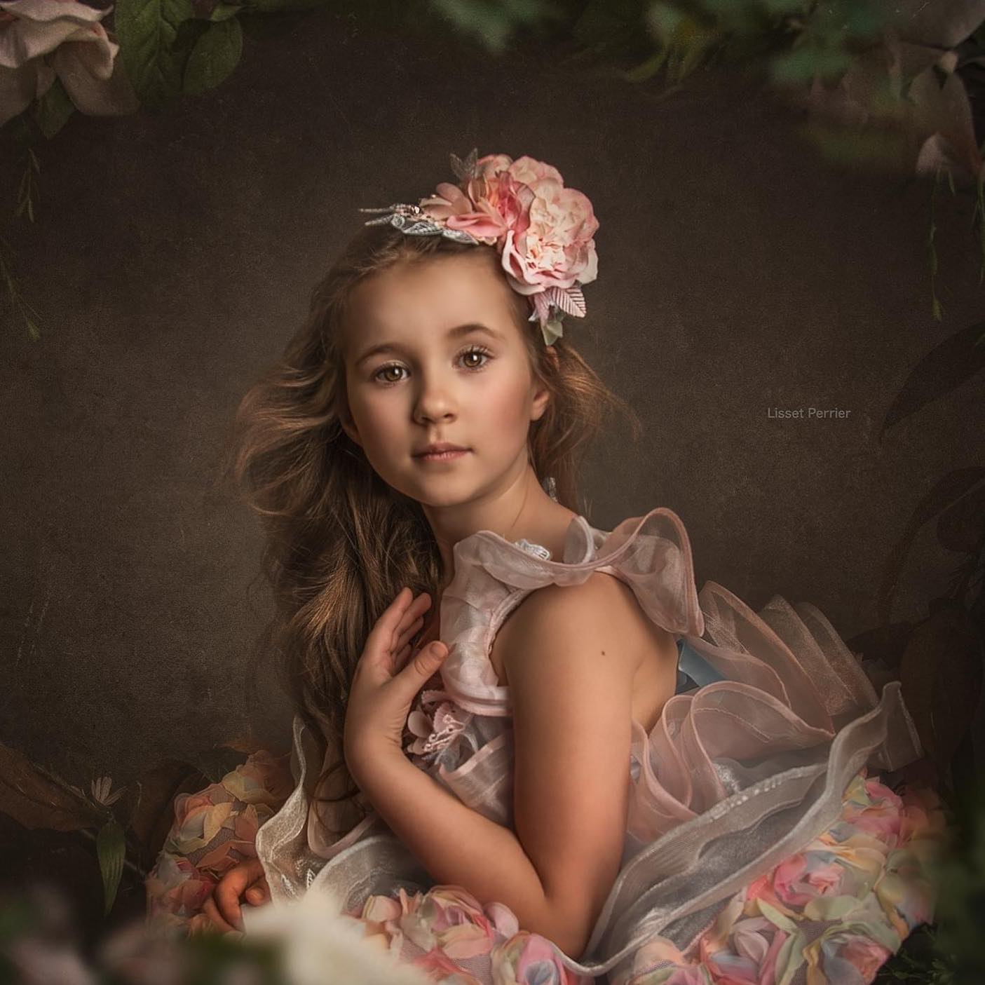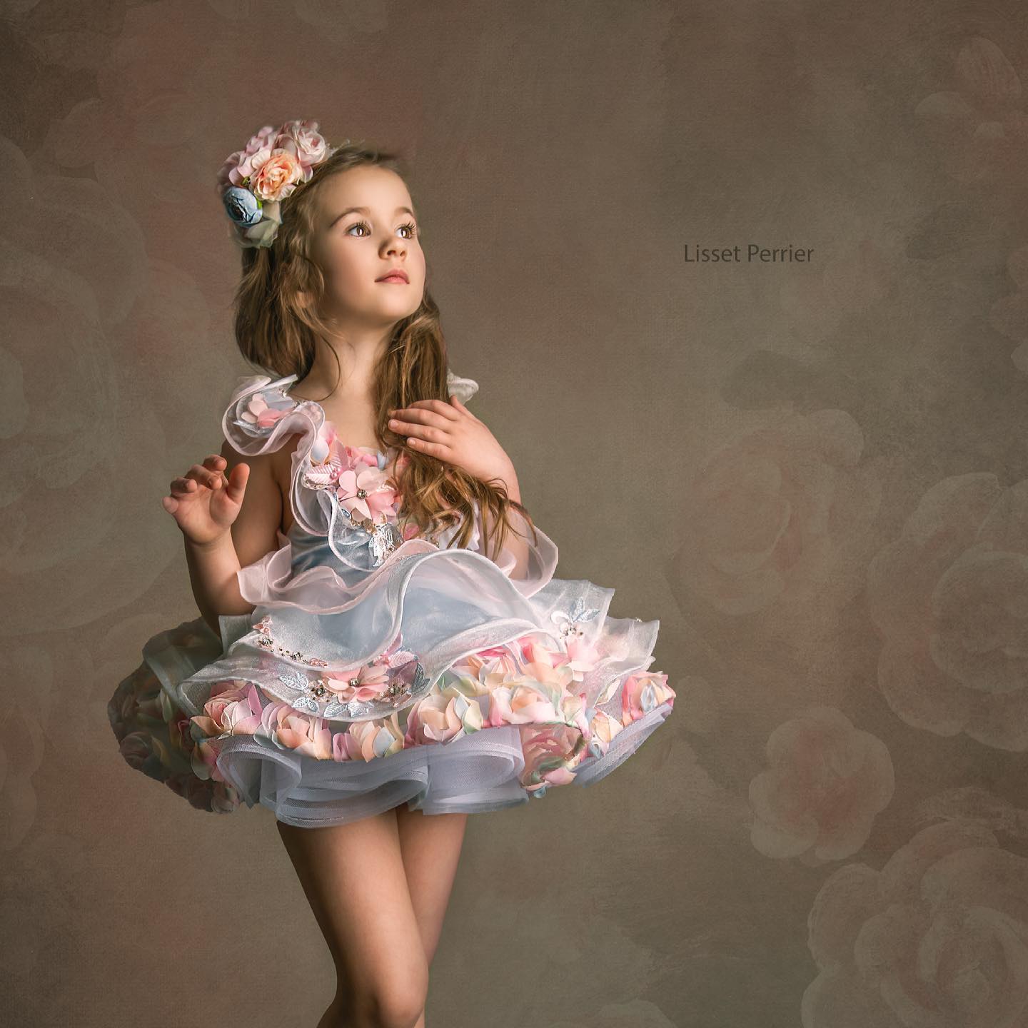 Perhaps one of the most beautiful dresses I've ever seen, Rainbow Rose features a cascade of the most beautiful pastel rainbow roses on the skirt. This skirt is super full and fluffy and meant to be a 'vintage fit' on the child. The dress features a baby blue stretch top adorned with sparkling flowers and the look is completed by a ruffle peplum at the waist and ruffle flutter sleeves. This dress best fits sizes 2/4/5/6. With a stretch bodice, the dress is very accommodating to a wide range of sizes and body shapes. Don't forget to add on the Big Sister dress for a sweet sister set! *Dress comes with made to match headpiece shown as well as floral bloomers to wear underneath the dress*